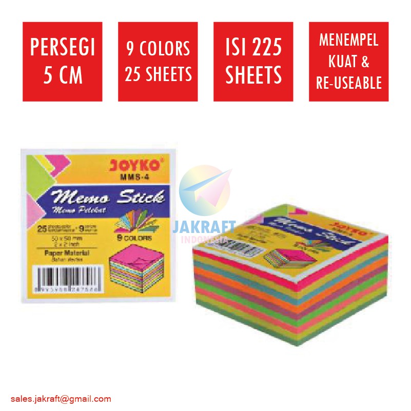 (225 Lembar) Kertas Memo Stick Tempel 9 Warna Mix JOYKO MMS-4 Sticky Note (5 x 5 Cm)