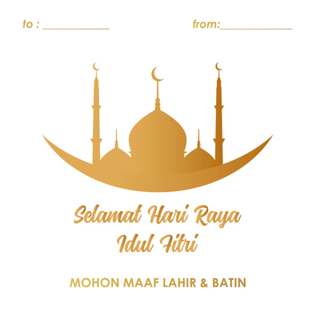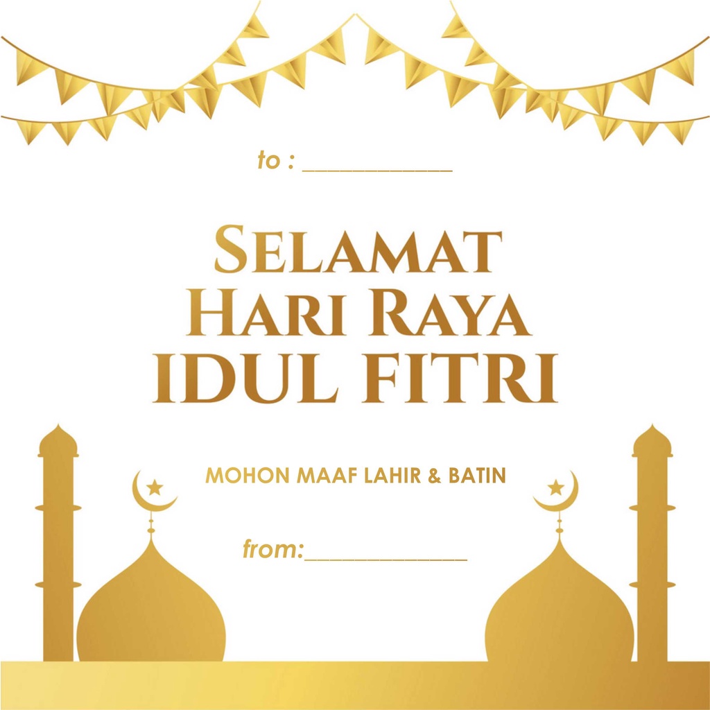 (24 Pcs) Kartu Ucapan Lebaran Idul Fitri Greeting Card Eid Mubarak Custom Gold Edition Ukuran 8x8cm (Persegi)