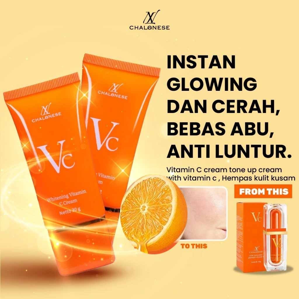 CHALONESE Cream 5x Vitamin C Pelembab Wajah Cream Whitening Glowing Skin Ligheten Spots VC Face Cream 30Gr Skincare Krim Siang Malam