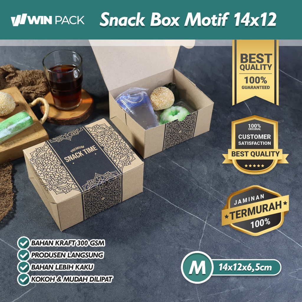 Isi 50 Pcs Snack Box 12x14 cm | Dus Kue 14x12 | Dus Snack | Motif Classic Islami | Kraft 300 GSM