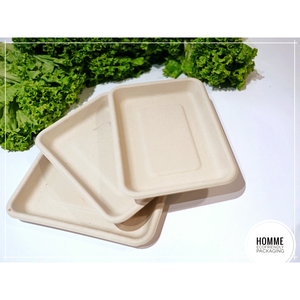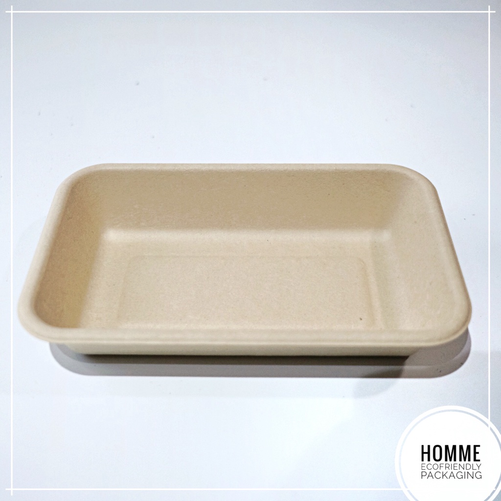(25 Pcs 800ML) Food Tray Rectangle Bamboo Pulp Ecofriendly Packaging Tempat Makanan Pengganti Styrofoam 800ml