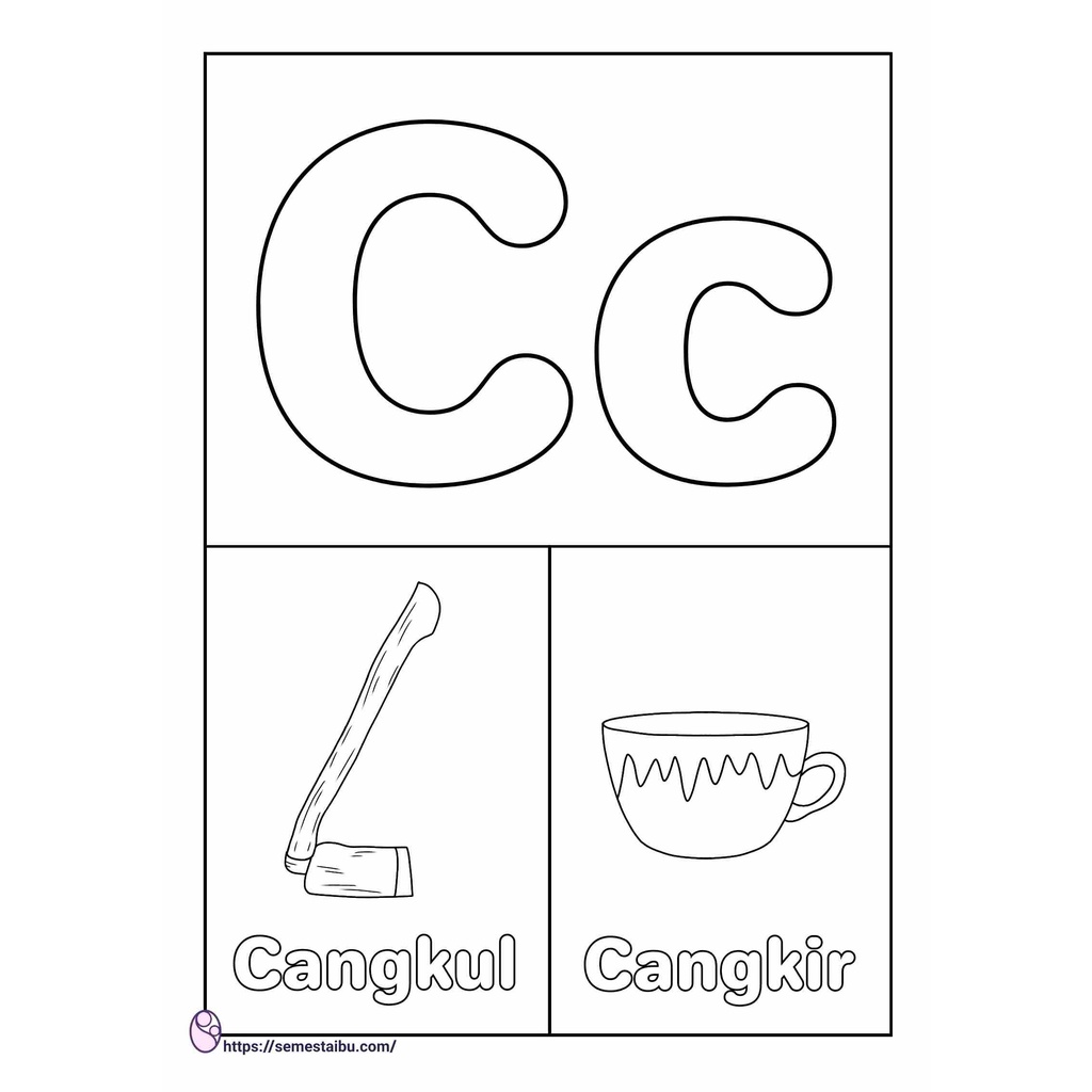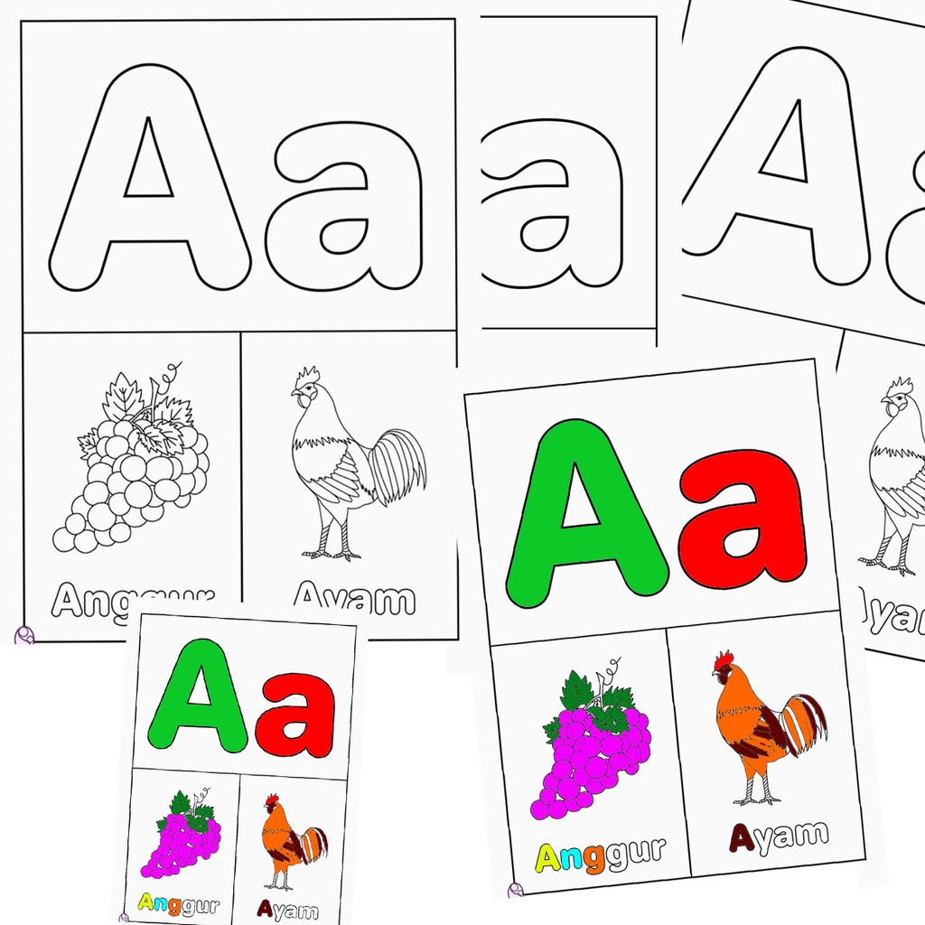 (26 Lembar) Gambar Sketsa Mewarnai ~ ABJAD A-Z / Seketsa Lukis / Drawing Sketch / Menggambar A4 (Buka Buku) ANAK TK PAUD
