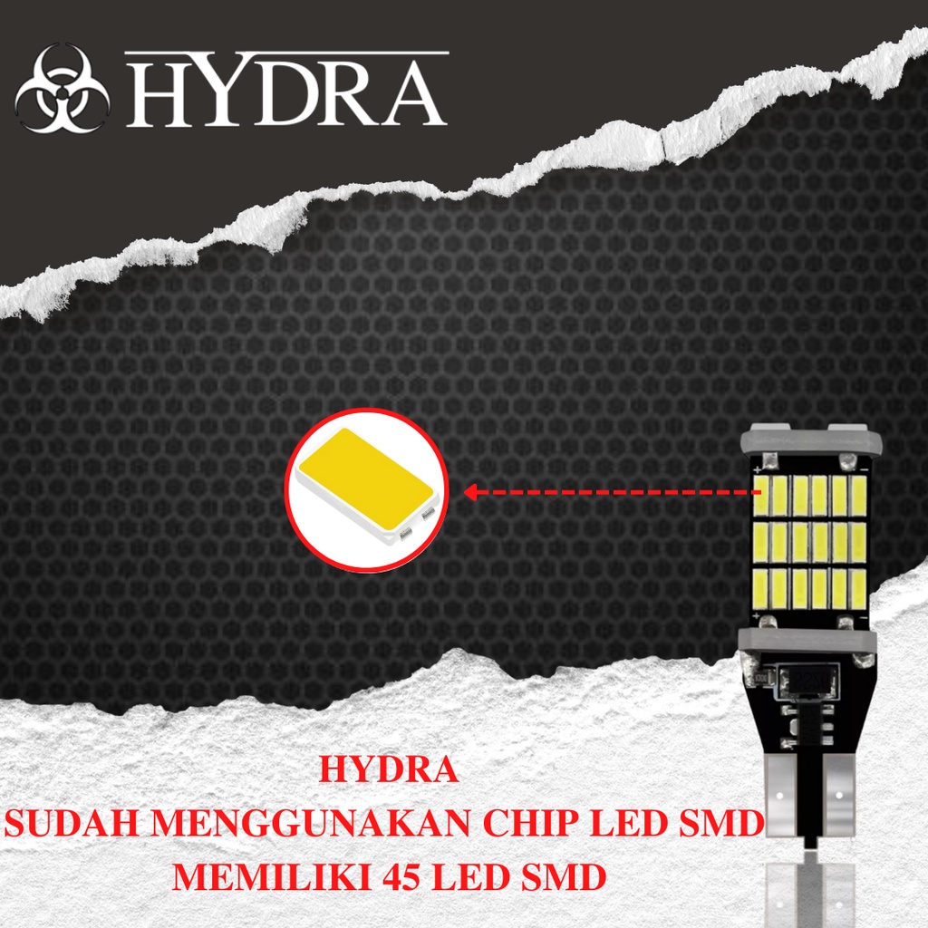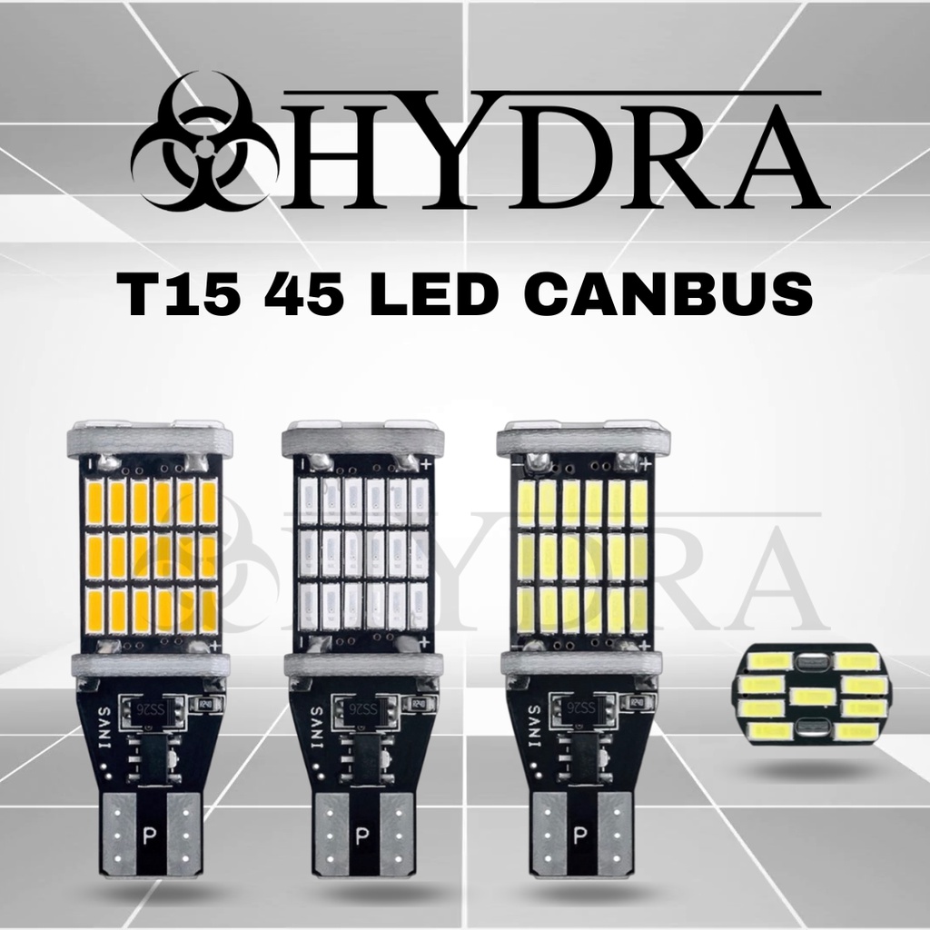 (2PCS) HYDRA Lampu LED Mundur Senja Sein T15 SMD 4014 45 Titik Mata Sen Rem Canbus T10 W16W Mobil Motor 2 pcs atau 1 set