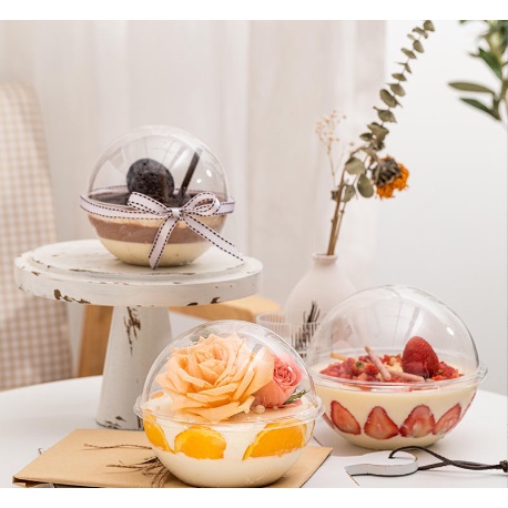 (2pcs) Dessert Bola Pink Blue Transparan Bola Plastik Dessert Box Tempat Desserts Box Hampers Hamper Gift Box Packaging Box Unik