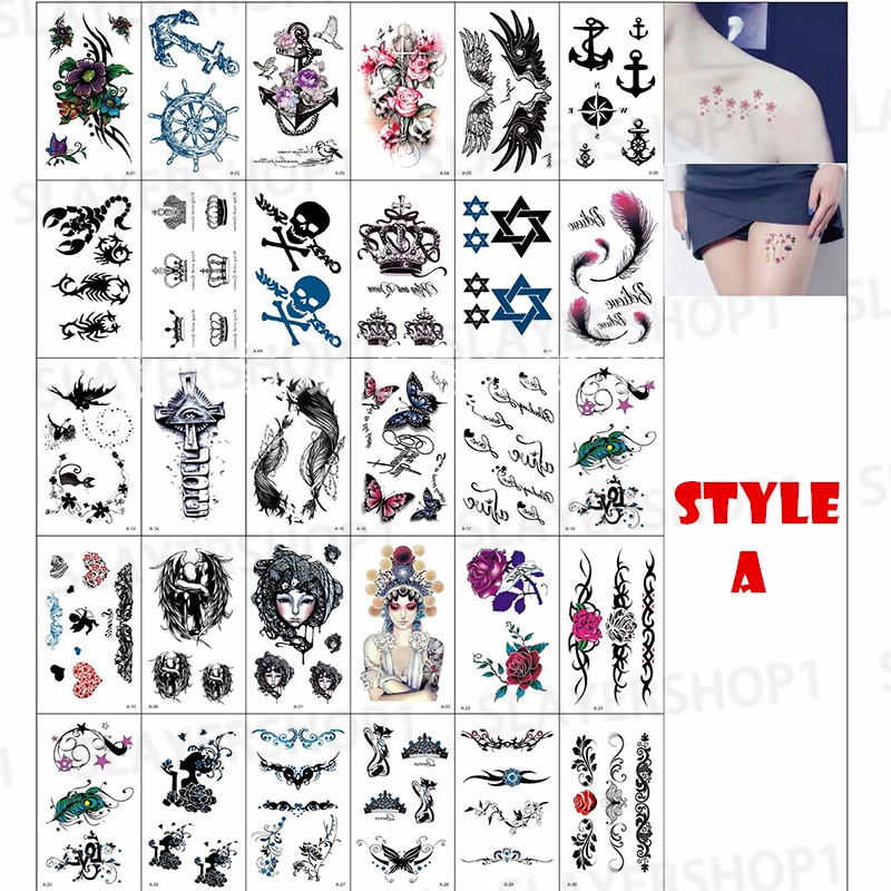 (30 pcs) Seni Tato Temporary Tubuh Tahan Air