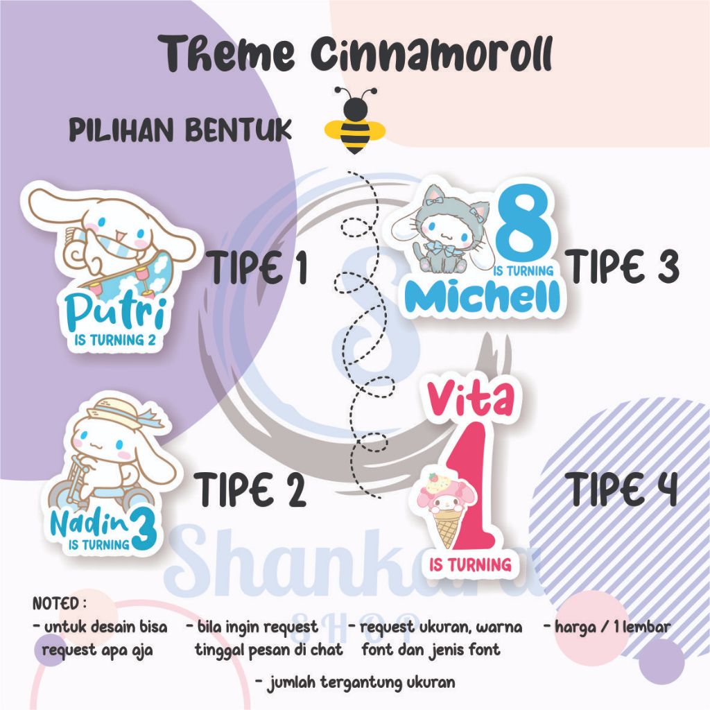 (30pcs) Tag THEME CINNAMOROLL ( TAG ONLY ) TIDAK TERMASUK TALI / Tag Hampers Ulang Tahun Anak / Gantungan Custom / Cutting DIE cut / Hangtag Hologram