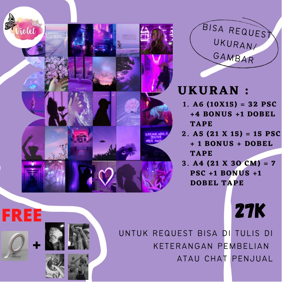 (36Psc) POSTER DINDING ESTETIK WALLPAPER UNGU