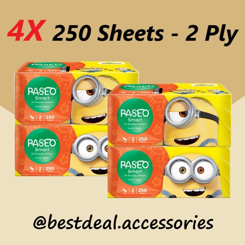 (4 PACK) Paseo Smart Soft Facial Tissue Tisu 250 Sheets - 2 Ply