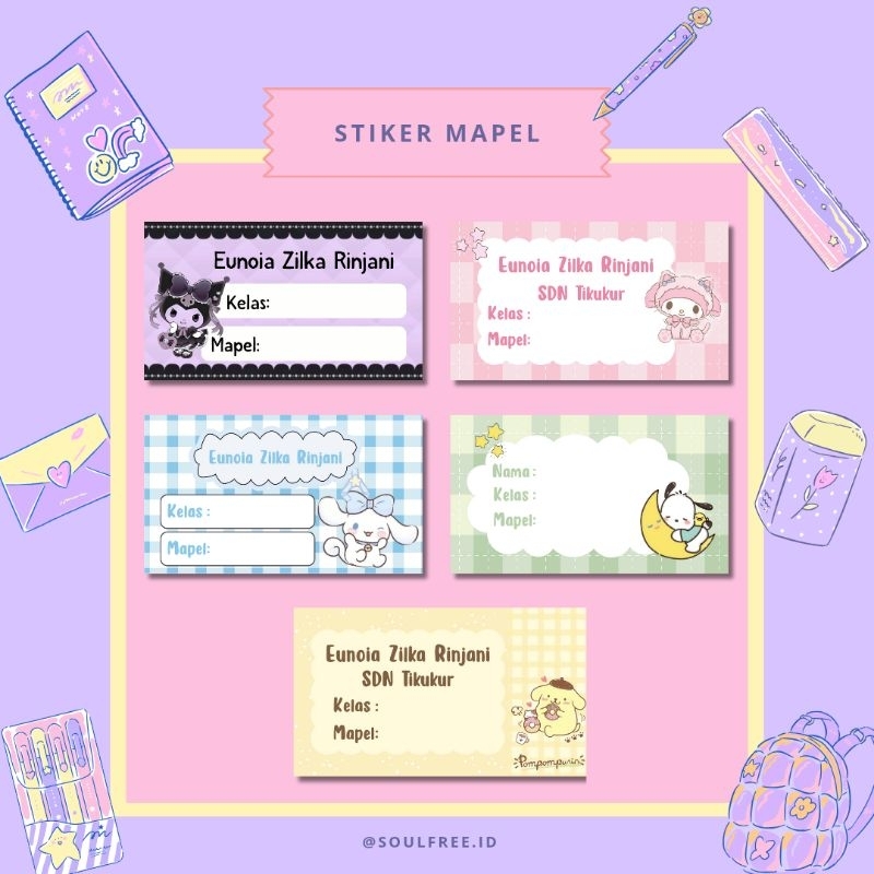 (40pcs) stiker mapel custom/stiker label buku / stiker nama custom / stiker buku lucu / SANRIO