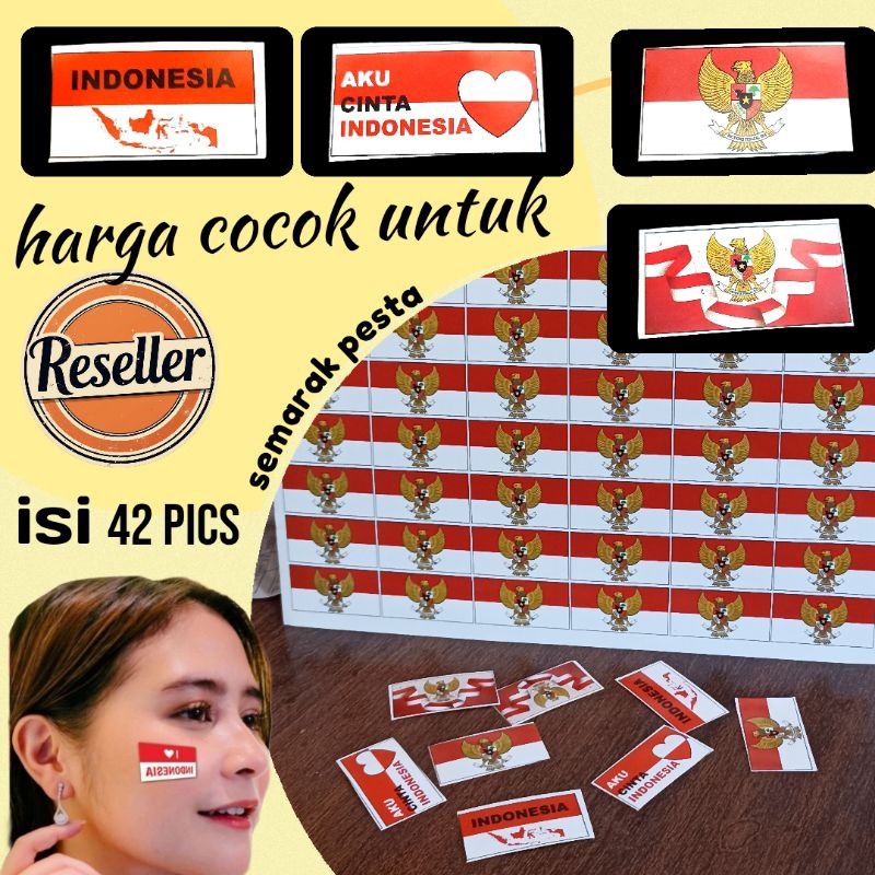 (42×4=168 pics) sticker pipi, sticker pipi bendera merah putih,aksesoris carnaval