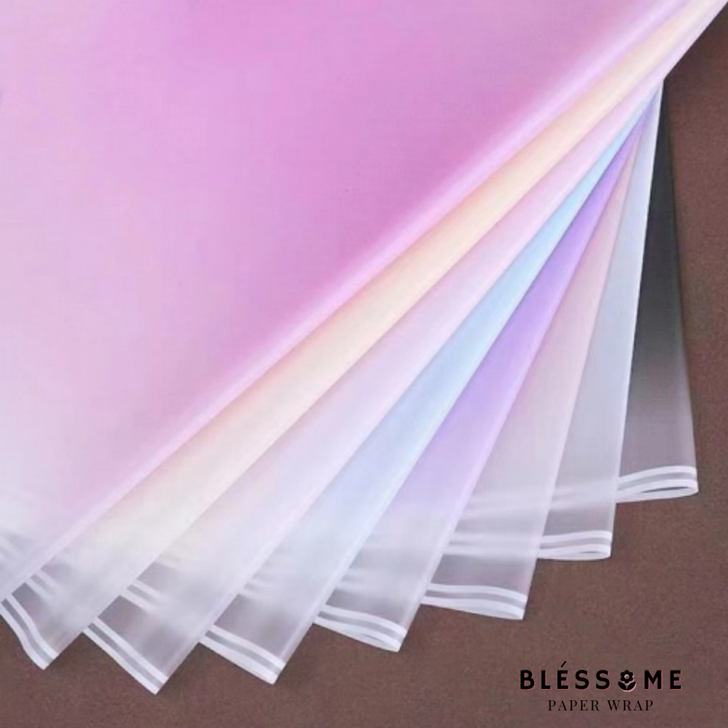 (5 LEMBAR) Flower Wrapping Paper Gradation List / Gradient Double Line / Lis Putih Gradasi Kertas Buket Bunga Florist Cellophane Pembungkus Kertas Hand Bouquet