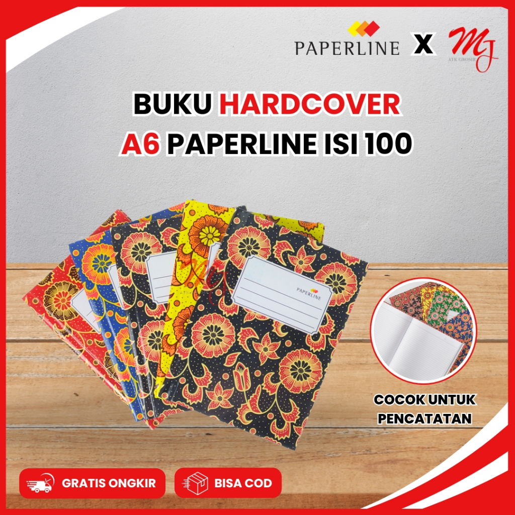 (5 Pcs) Buku Tulis HARD COVER A6 PAPERLINE 1 Pack Motif Batik Warna Glossy 100 lembar