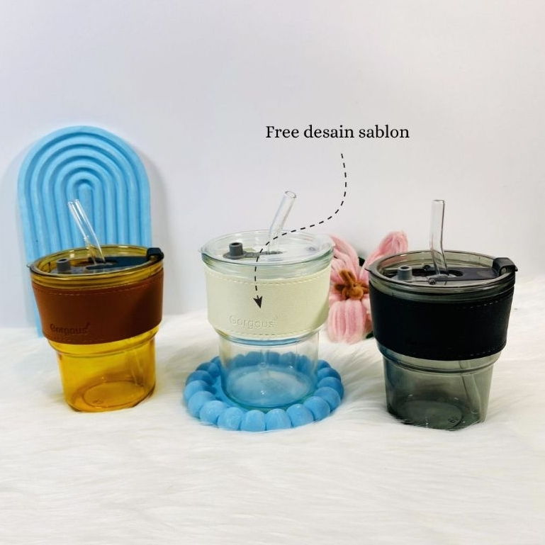 (50 PCS) Souvenir Pernikahan Gelas Tumbler Aesthetic 400 ml / Gelas Minum Kaca + Sedotan Kemas Box