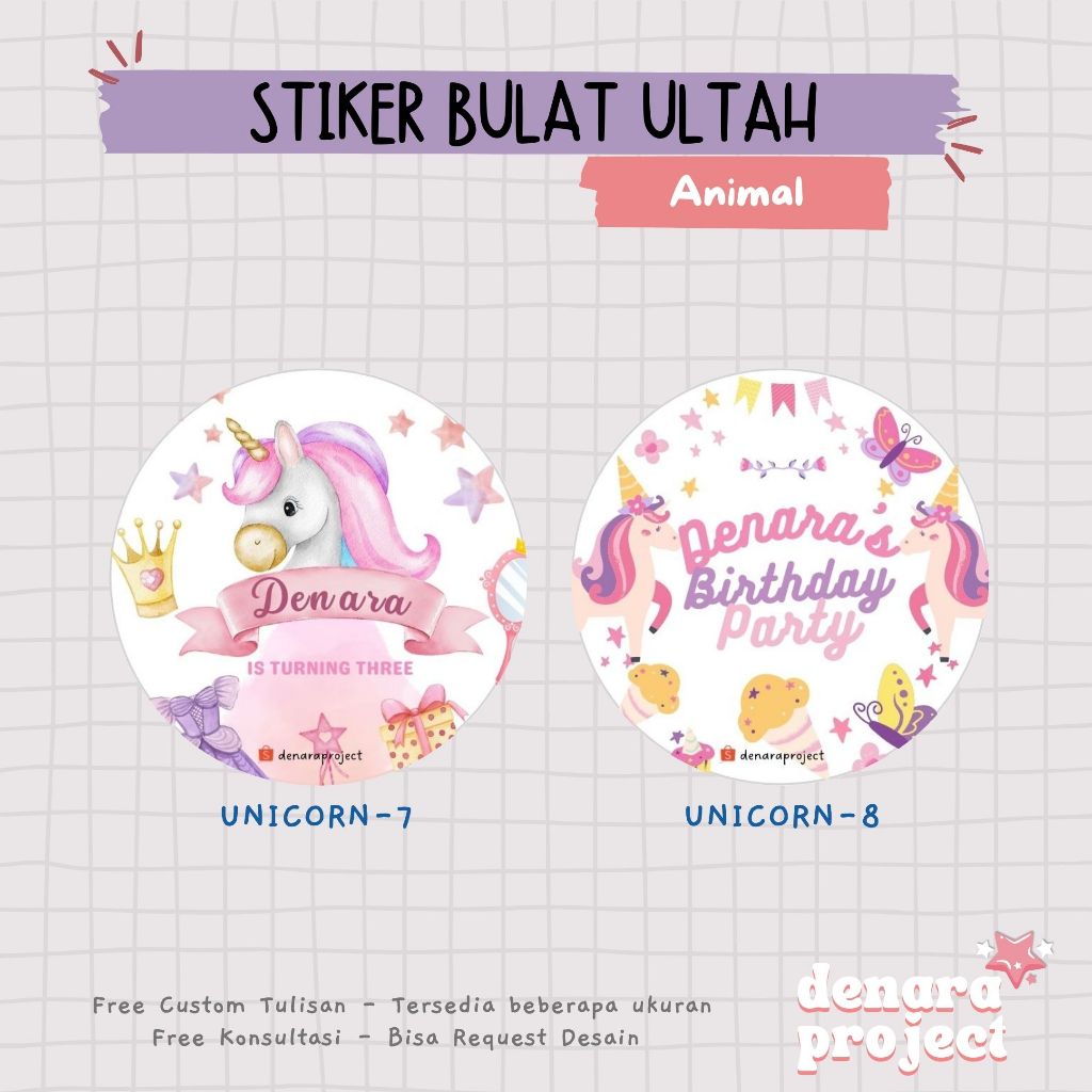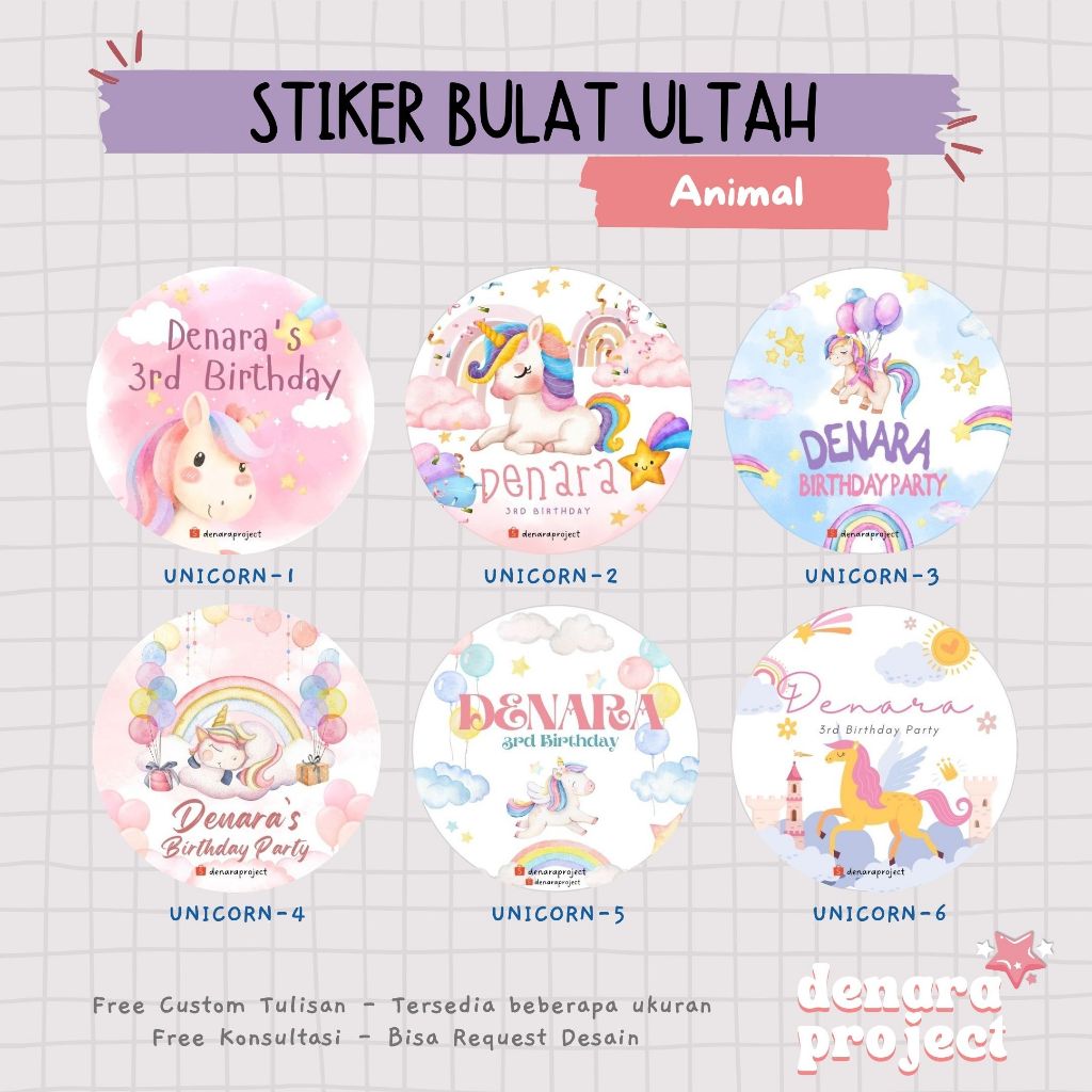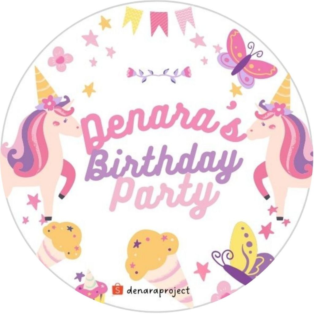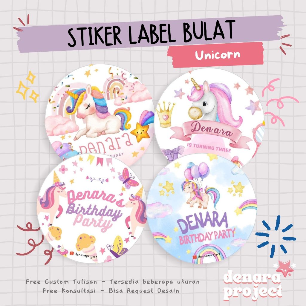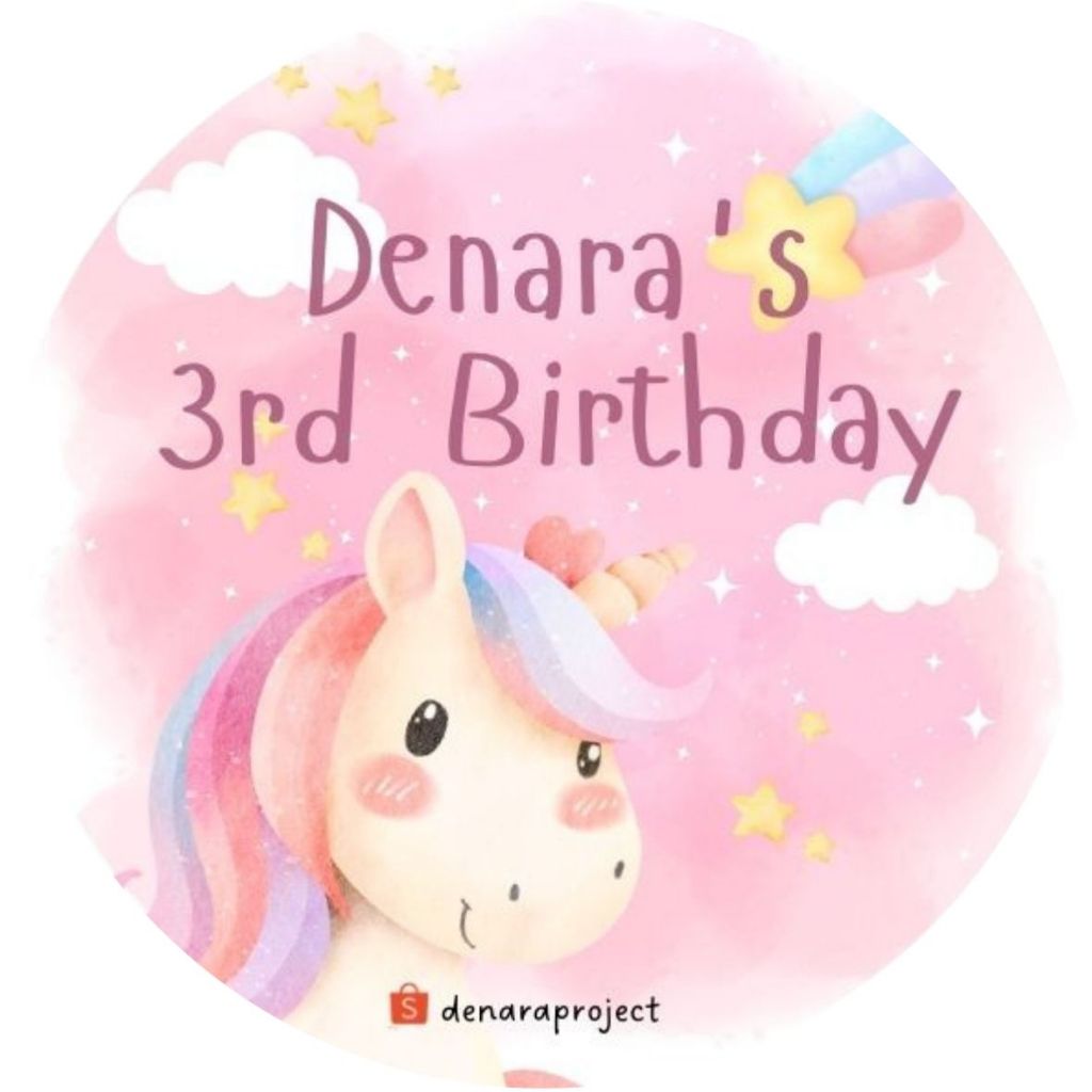(50 PCS) Stiker Bulat Custom Bento Hampers Ulang tahun Unicorn