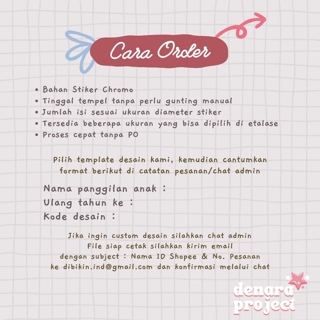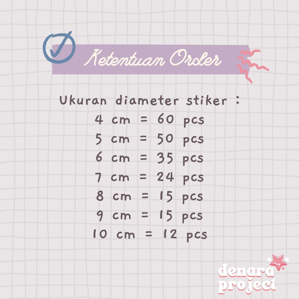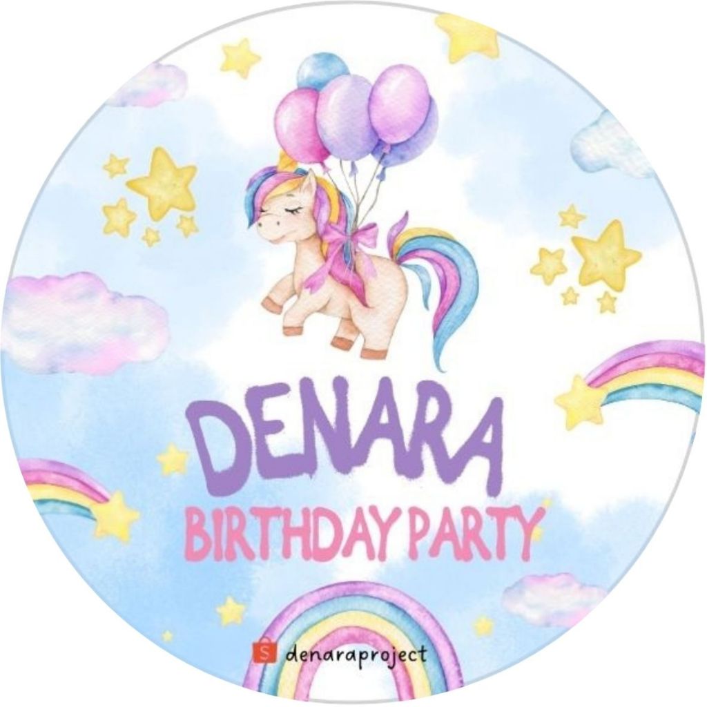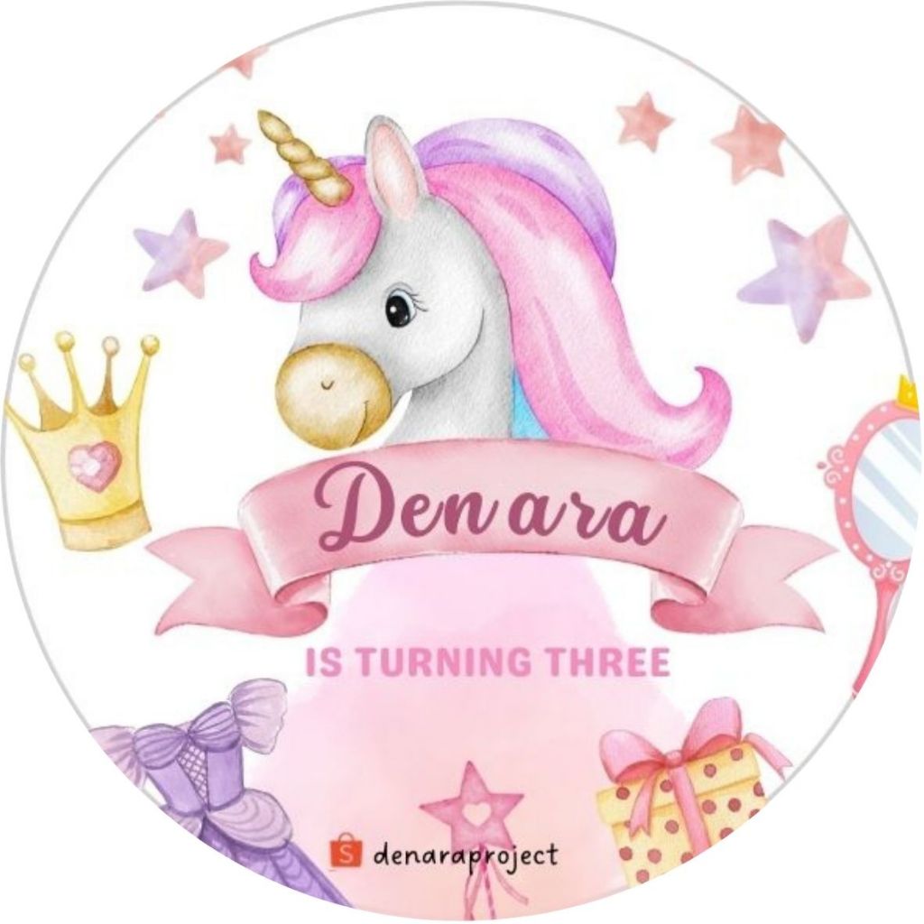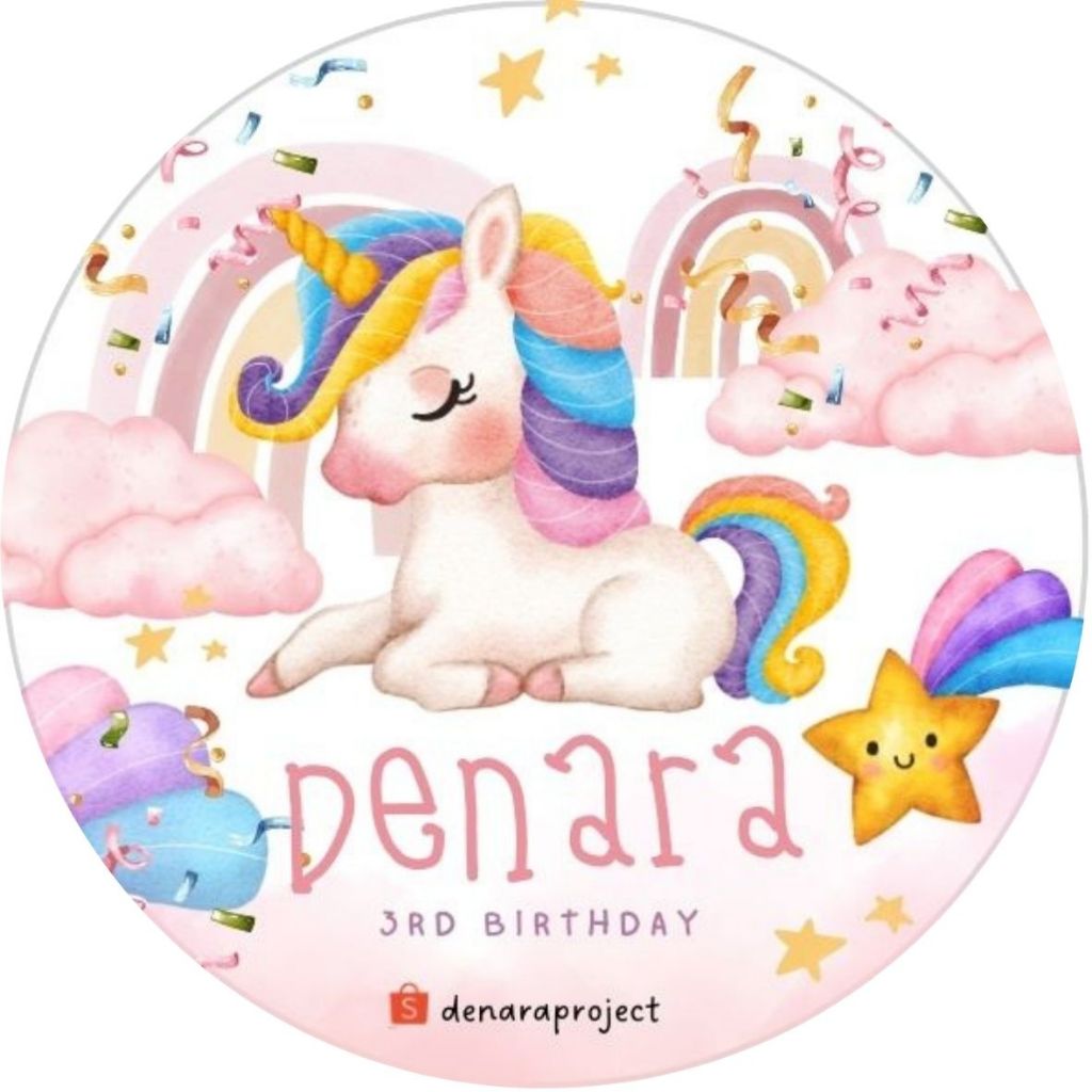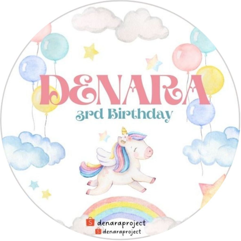 (50 PCS) Stiker Bulat Custom Bento Hampers Ulang tahun Unicorn