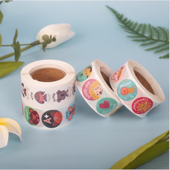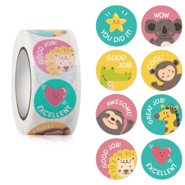 (500 pcs) Sticker Stiker Setiker Roll Great Work Good Job Awesome Cool Amazing Excellent Wow Beautiful You Can Do It You Did It Nice A+