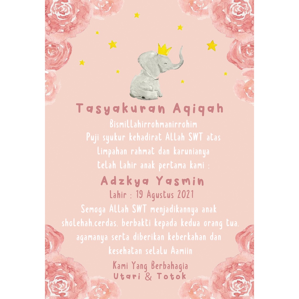 (50PCS) Kartu Ucapan Aqiqah / Stiker Tasyakuran Aqiqah