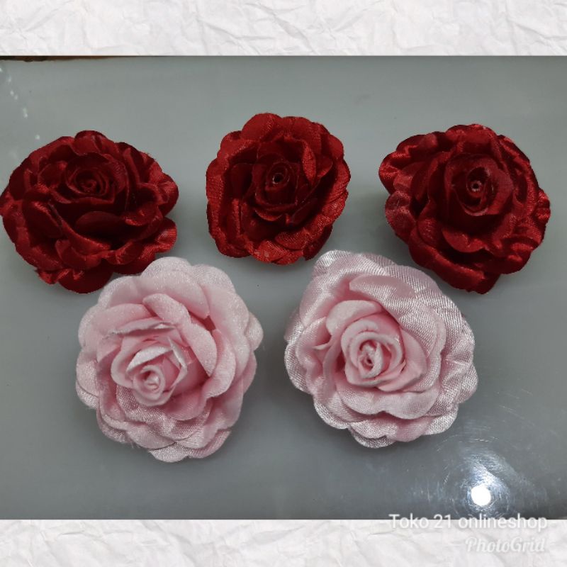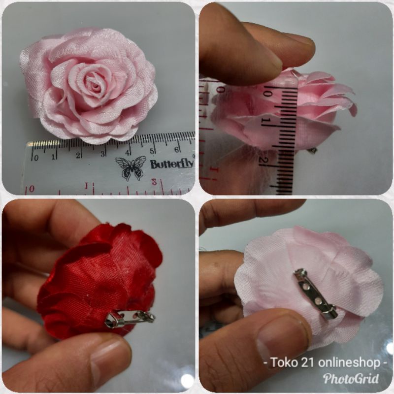 (6 pcs) Korsase bunga motif bunga mawar dengan peniti/Flower corsage/Bunga kain hias/Bunga kreasi dekorasi