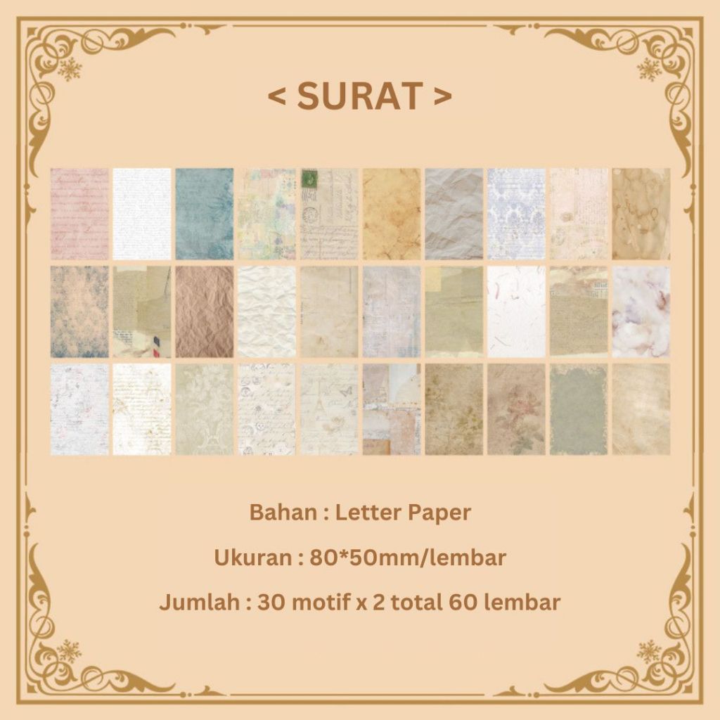 (60 Lembar) Kertas DIY Vintage Estetik Design Dekorasi Buku Scrapbook Kreatif STK2017