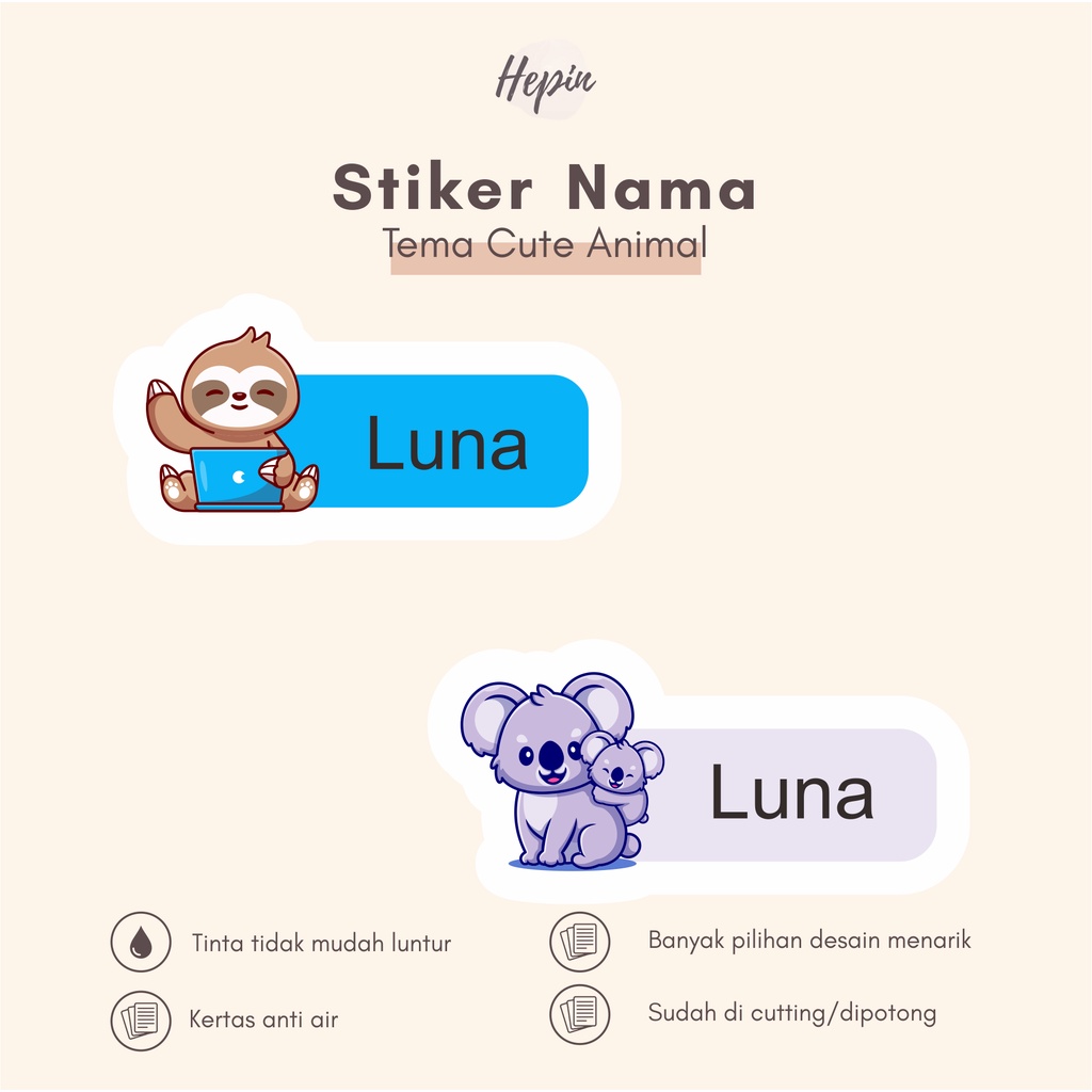 (90 - 120 pcs) Murah Stiker nama CUTE ANIMAL / Stiker Nama Anak Murah / Label Nama Custom waterproff