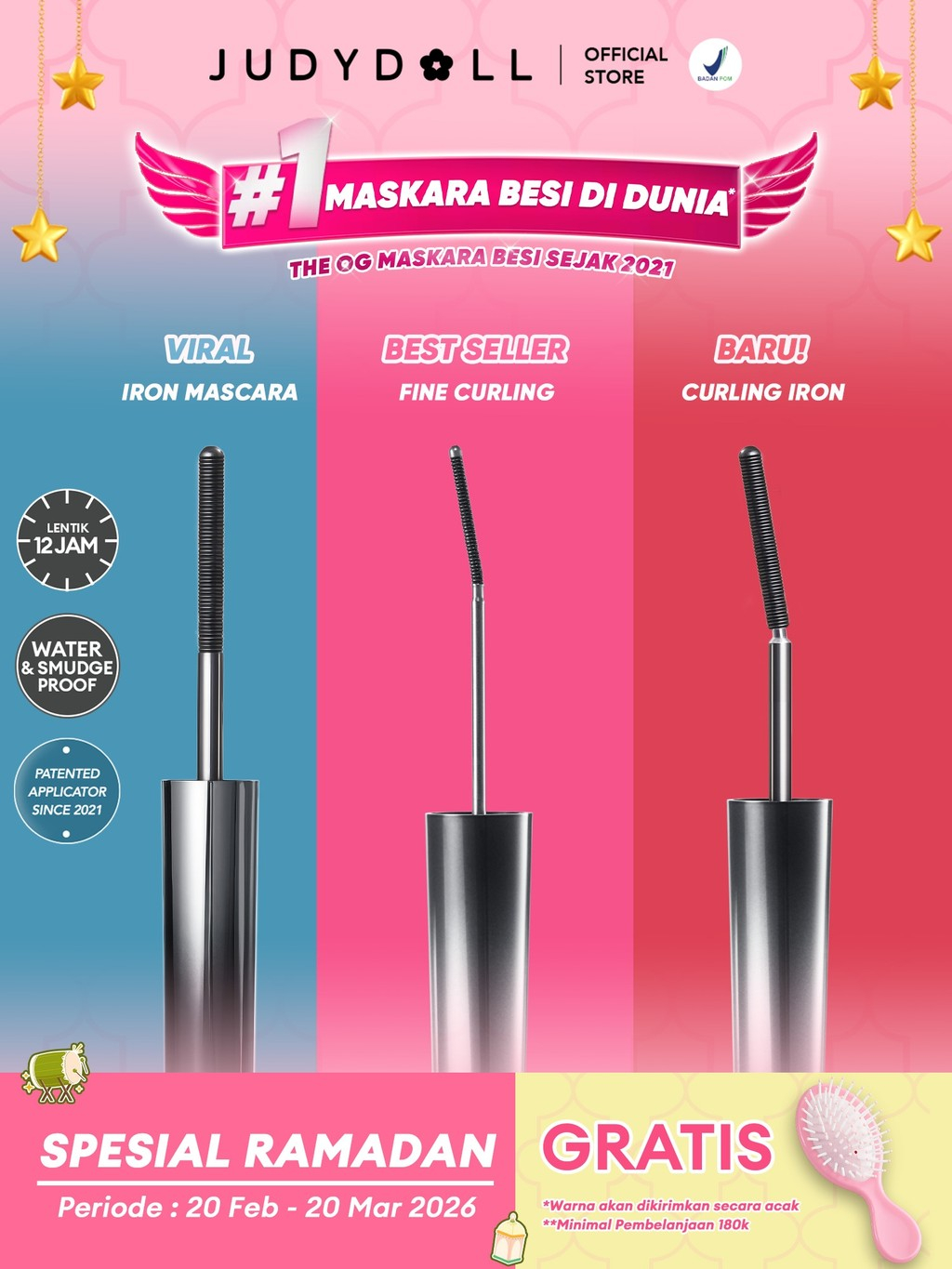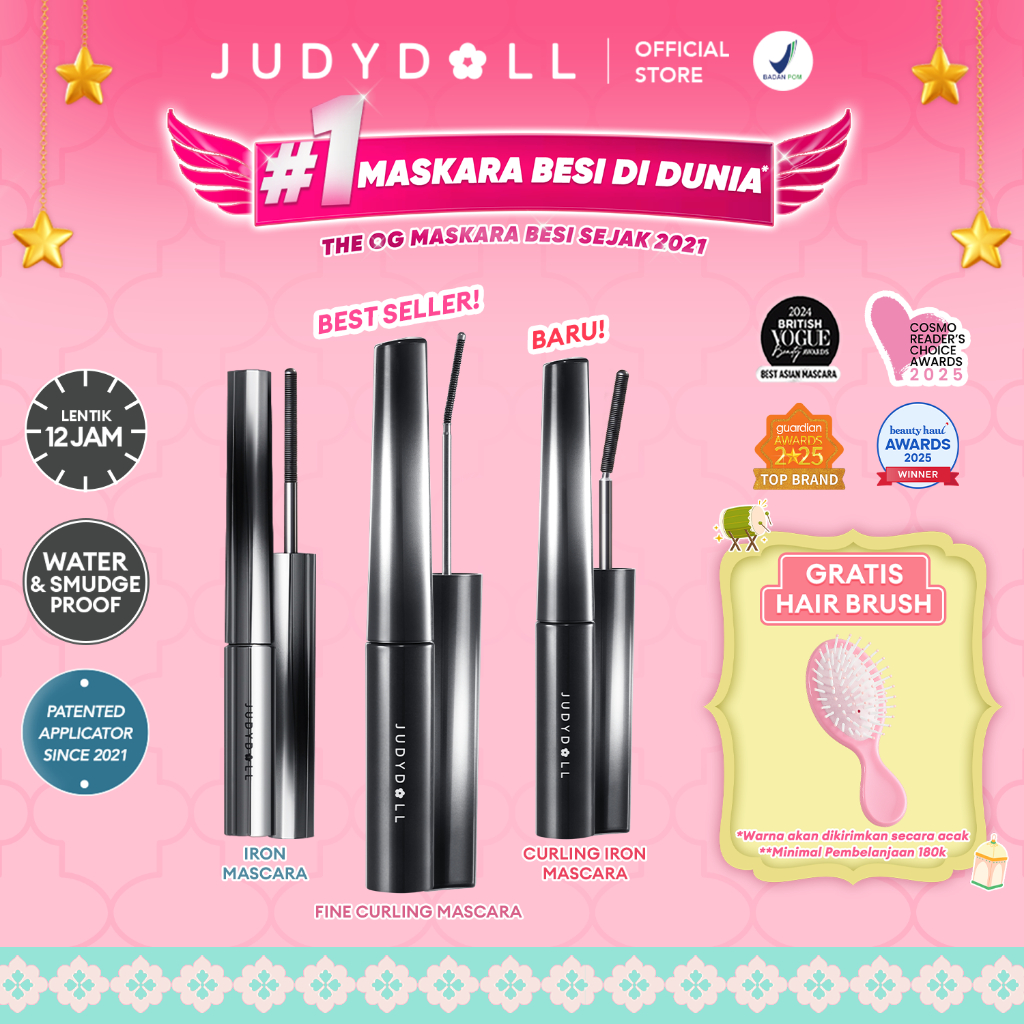 (BARU!) Judydoll Iron Mascara Viral (Maskara Besi Waterproof, Smudgeproof, Anti Clumpy, Hasil Lentik Natural Tahan Lama 12 Jam)