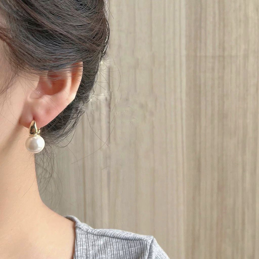 (BELI 2 DAPAT BONUS) AT140 Anting Mutiara Besar Retro Korea anting titanium/ANTING HOOP RINGS PEARL KOREA STEEL model korea simple elegant steel titanium clip mutiara
