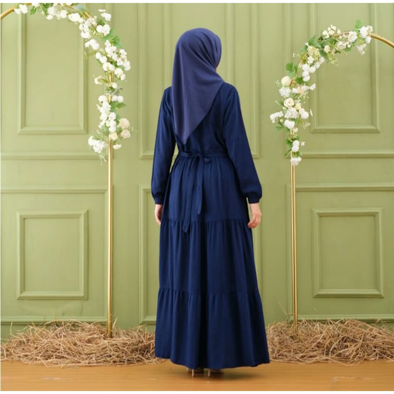 (BISA COD) Gamis muslimah warna biru busui kekinian dress wanita terbaru atasan wanita navy rampel susun murah gamis polos terlaris