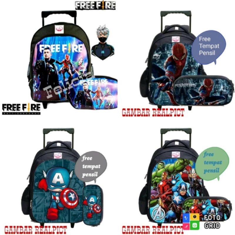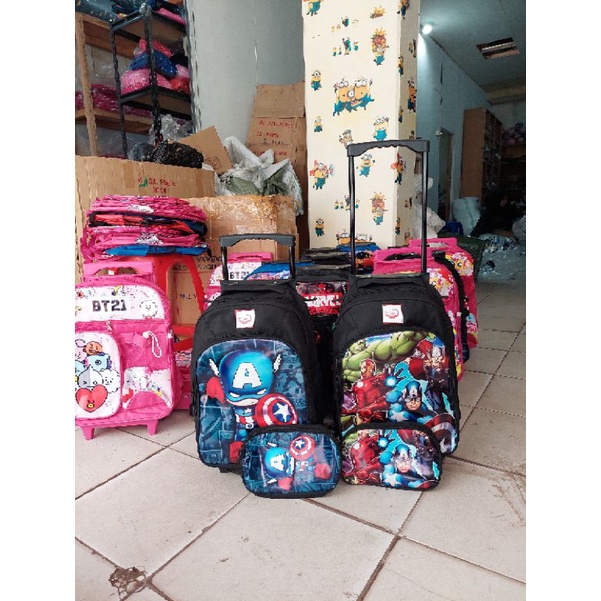 (BISA COD) NSTORE15-Tas KARAKTER Koper Ransel Anak Sekolah SD Trolley Dorong Troli / Tas troli anak laki laki / tas troli anak perempuan / tas troli