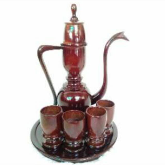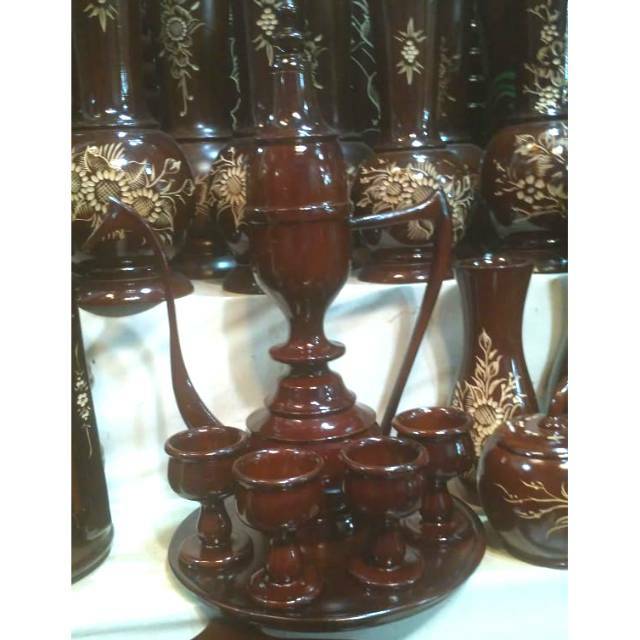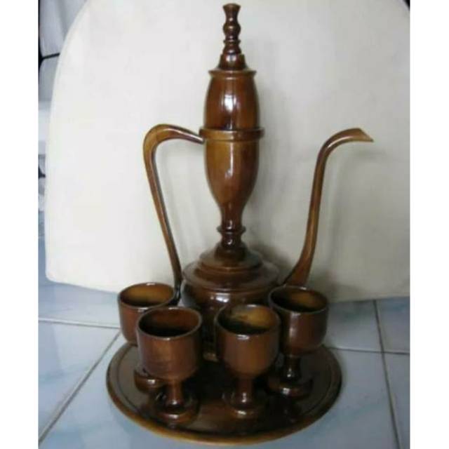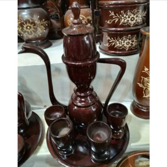 (BISA COD) SATU SET TEKO DAN GELAS MODEL ALADIN KAYU JATI - HIASAN MEJA TAMU - DEKORASI RUMAH MURAH
