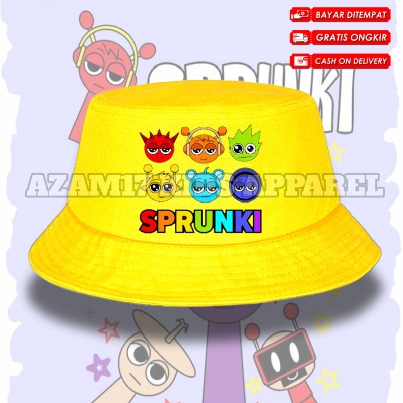 (BISA COD) Topi Bucket Anak Sprunki Karakter Raddy Oren Wenda Simon Vineria Clukr Durple Dll / Bucket Hat Anak Sprunki Incredibox All Karakter