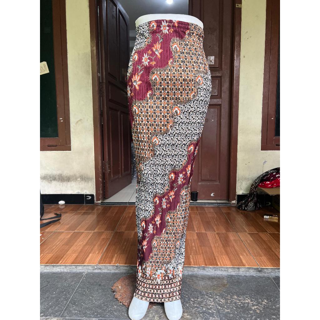 (BunGO) Rok Plisket Span Batik Bawahan Kebaya Warna Merah - Rok Batik Ragam Motif - Bawahan Rok Warna Merah terbaru