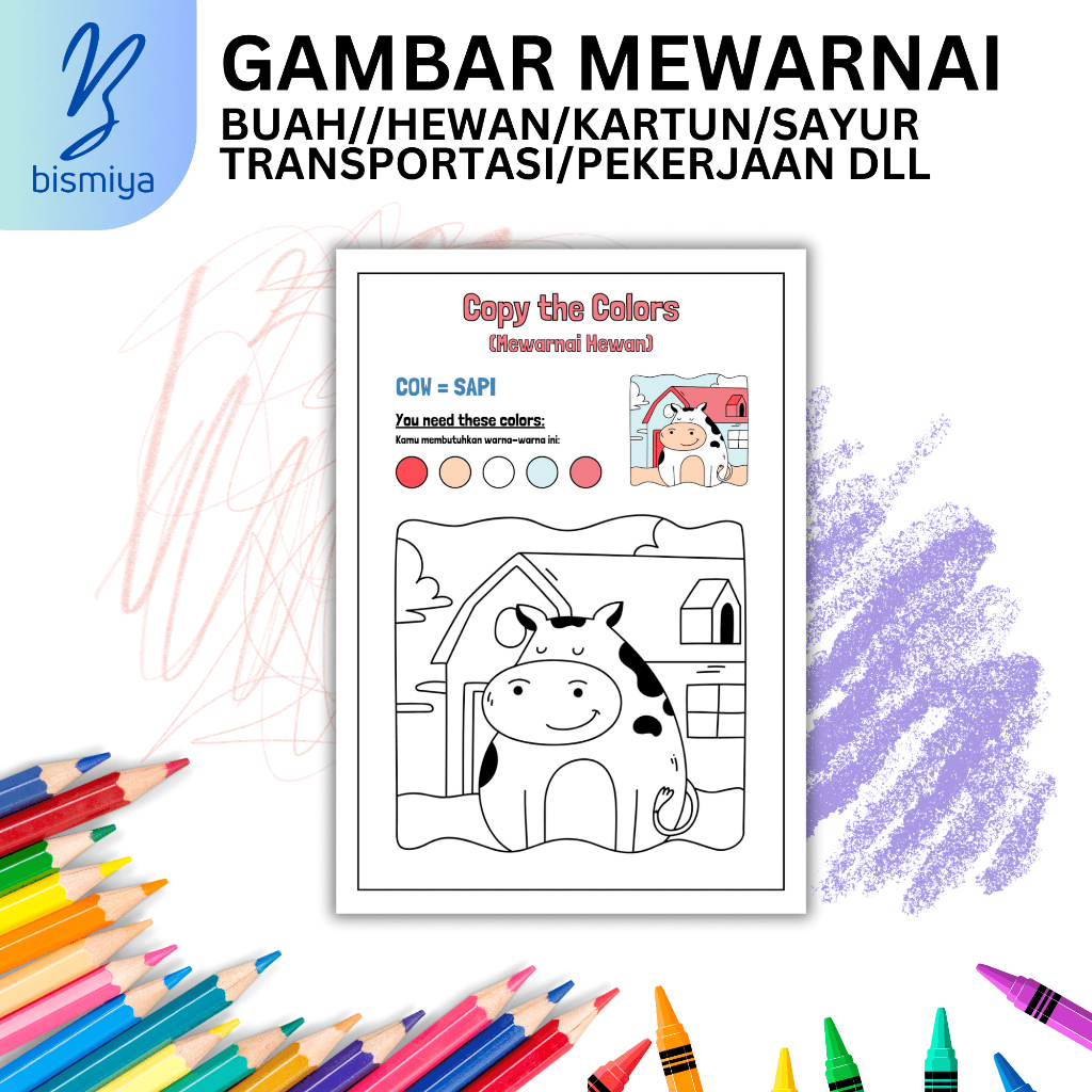 [G1] KERTAS MEWARNAI BUFALO / BELAJAR MEWARNAI / GAMBAR / HEWAN /KERTAS MEWARNAI ANAK PAUD TK SD / A4