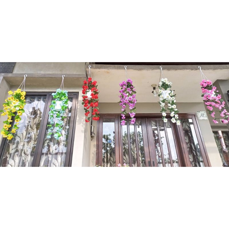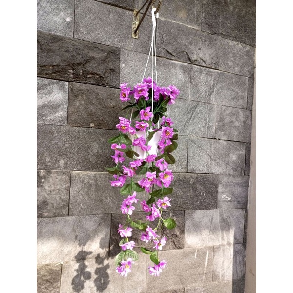 (COD) BUNGA GANTUNG ARTIFICIAL 80 CM + POT GANTUNG DIAMETER 15CM BUNGA RAMBAT ARTIFICIAL BUNGA GANTUNG HIAS DEKORASI RUANG BUNGA HIAS GANTUNG HIASAN TERAS BUNGA HIAS GANTUNG