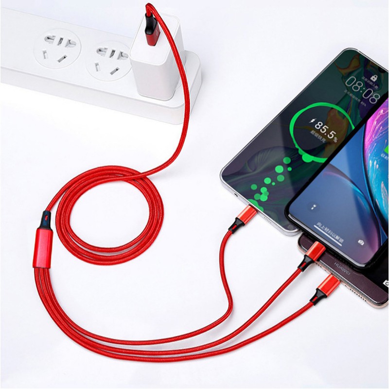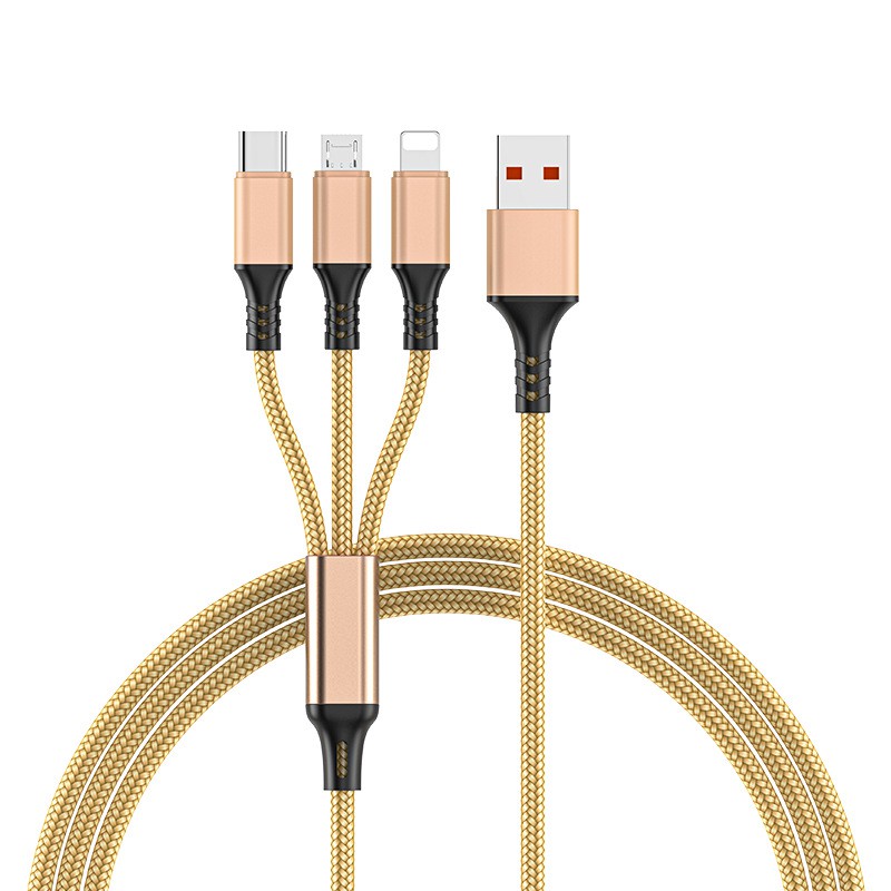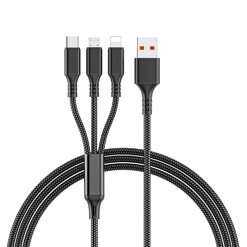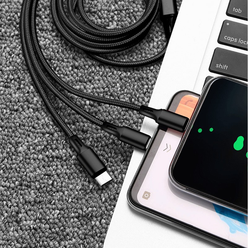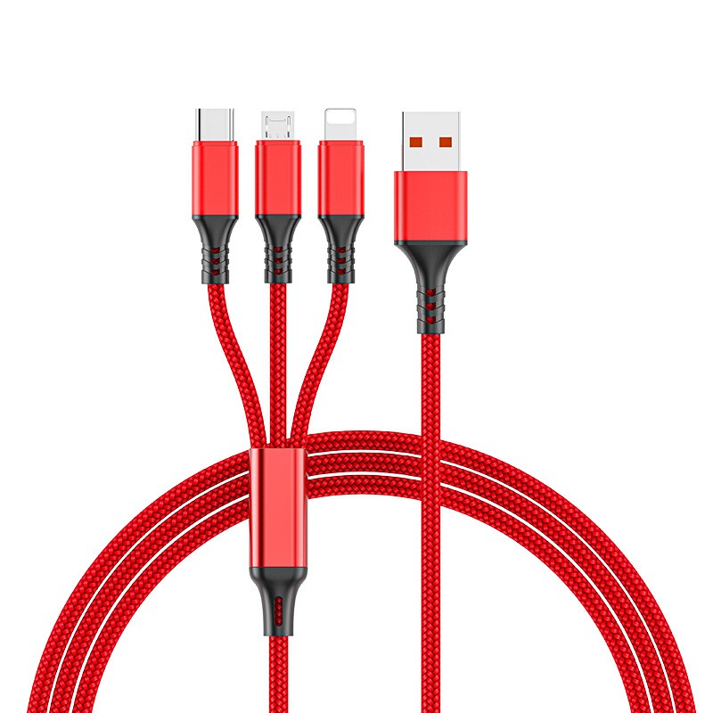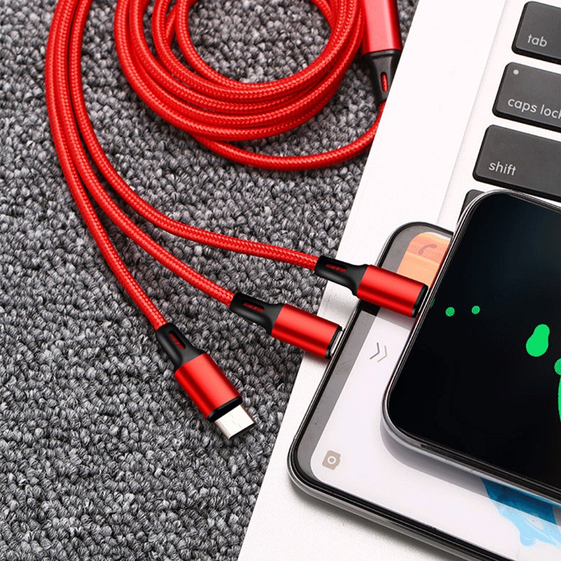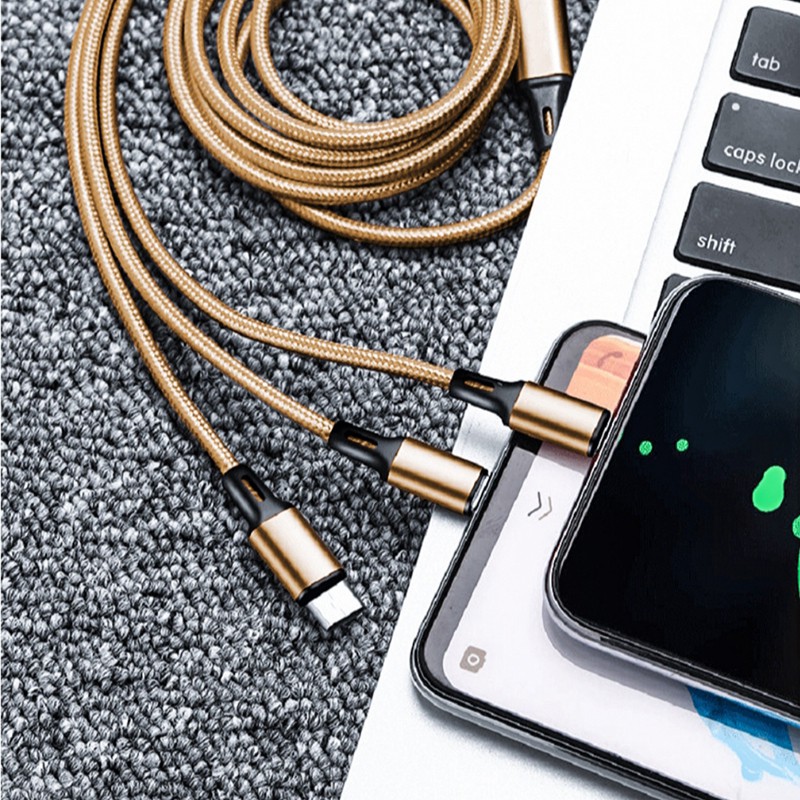 (COD) GROTIC Kabel Charger 3 in 1 Micro USB Type C Lighning 2A Fast Charging 1.2M Nylon Braided Cable tasimpor2008