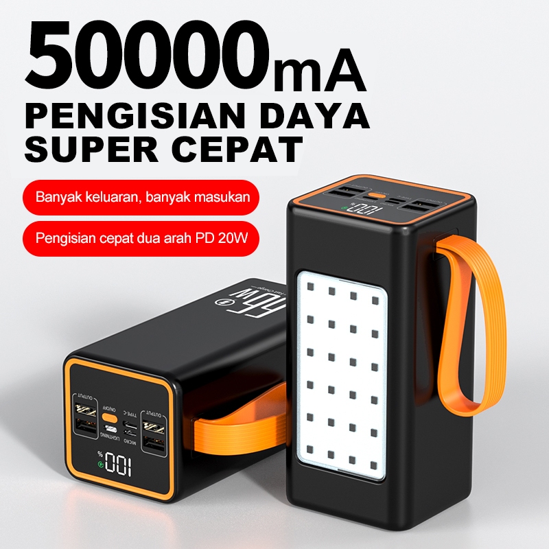 (COD) Kualitas tinggi Kapasitas besar 50000mah bank listrik LED Light Power Bank dengan empat kapasitas USB Kemping luar dengan lampu cepat