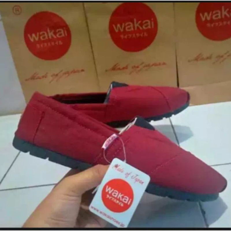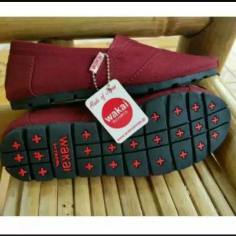 (COD) SEPATU WAKAI SLIP ON PRIA & WANITA sepatu Wakai merah maron sol criem / sol hitam sepatu Wakai slip on size 36-43