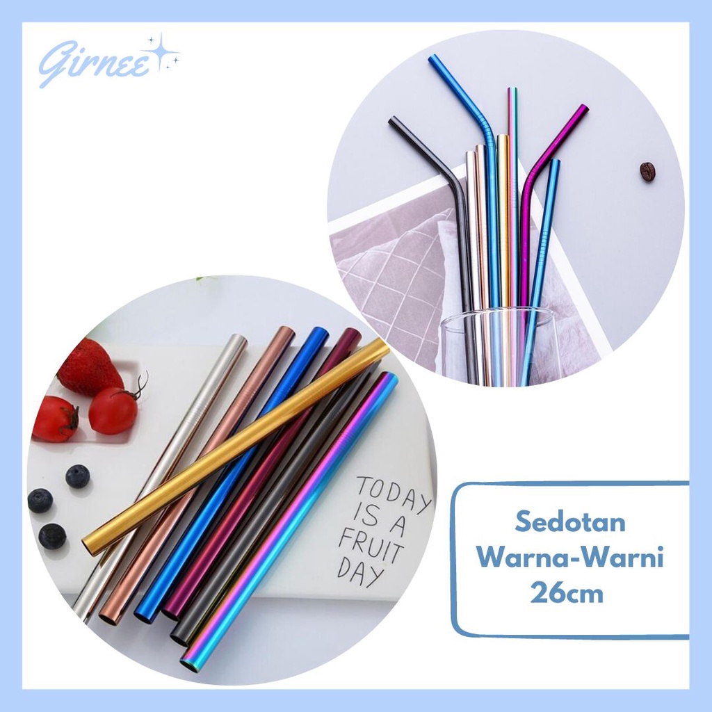 (COD) Sedotan Warna Warni Stainless 26cm Jumbo Besar Sedotan Panjang - Reuseable Stainless Straw Murah Sedotan Biru Rosegold Gold Hitam Silver