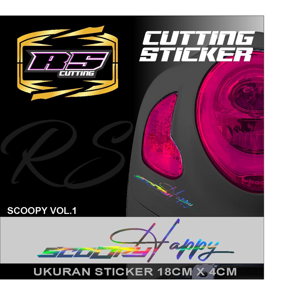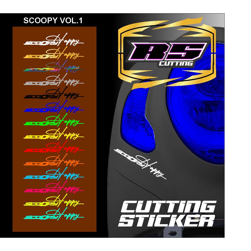 (COD) Sticker Scoopy Happy- Cutting Stiker Lis Variasi Motor Honda SCOOPY Signature Hologram Laser Chrome Gold Dan Solid RS VOL 01