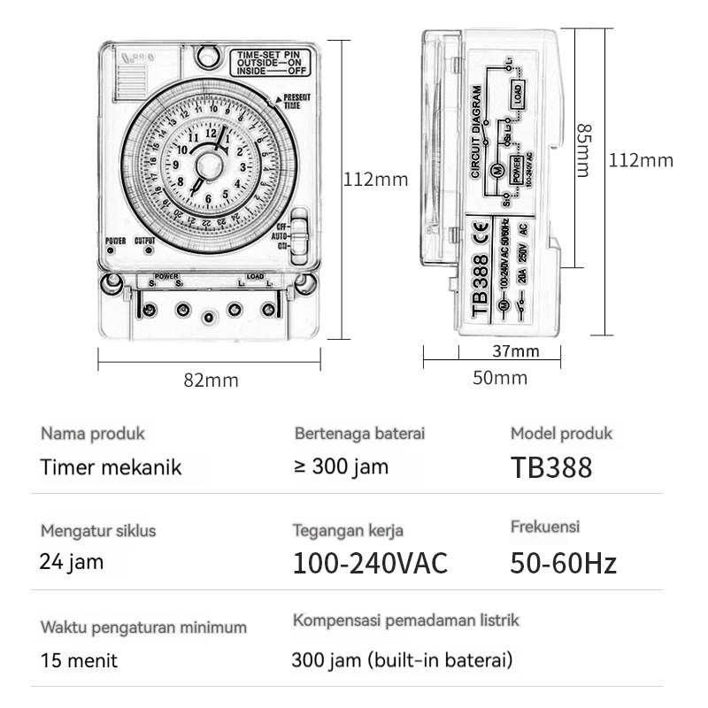 (lengkap ramadan) Timer Panasonic Timer Analog 24 Jam Otomatis TB388 Timer Analog Switch Panel Penghemat Listrik
