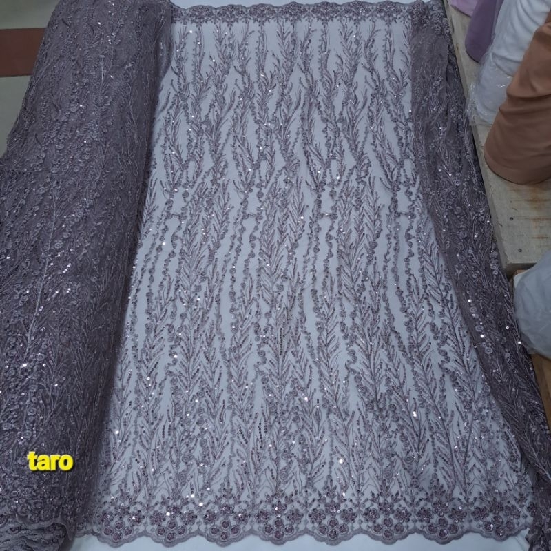(COD) bahan kain tulle padi full payett mewah/tille padi terbaru/tille payet korea/bakal kebaya wanita full payet