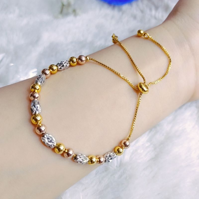 (COD) gelang tangan wanita motif serut biji lada combinasi warna gold perhiasan wanita mewah