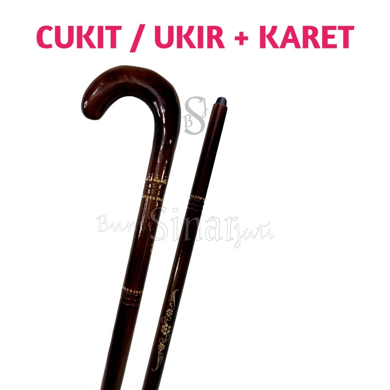 (COD) tongkat jalan kayu jati + sepatu karet anti licin / slip - tongkat orang tua - tongkat satu kaki - tongkat kayu jati model payung - tongkat lansia - tongkat ukir - tongkat kayu jati motif ukir - tongkat jalan kayu ukir - tongkat murah - teken kayu