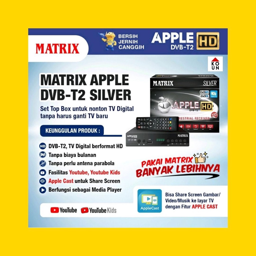 (COD READY) MATRIX APPLE SILVER SET TOP BOX DVB T2 / STB SANEX SN 1801 / SN1801 / SN-1801 / SN 1901 / DVB TOP BOX DVB-T2 / RECEIVER DIGITAL / PENERIMA SIARAN DIGITAL / PAKET WIFI DONGLE (GARANSI RESMI)
