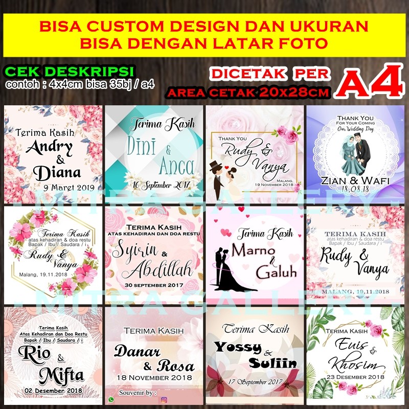 (CUSTOM DESIGN & UKURAN cetak per a4) Kartu Ucapan Terima Kasih Card Souvenir
