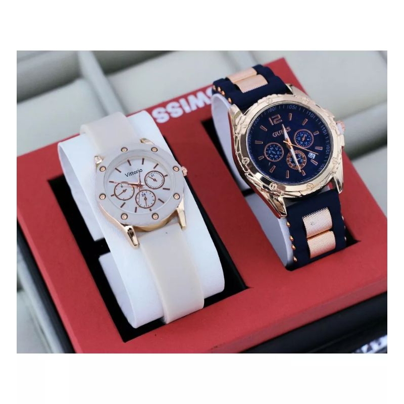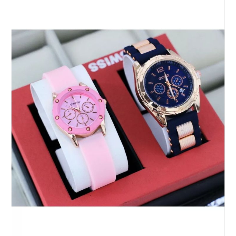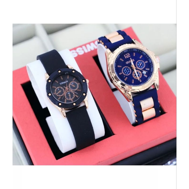 (Cod)Jam Tangan Wanita Buy 1 Get 1 Gues Crono3 + Gues Ring Tanggal Aktif Strap Rubber/Karet(Dikirim Jakarta)