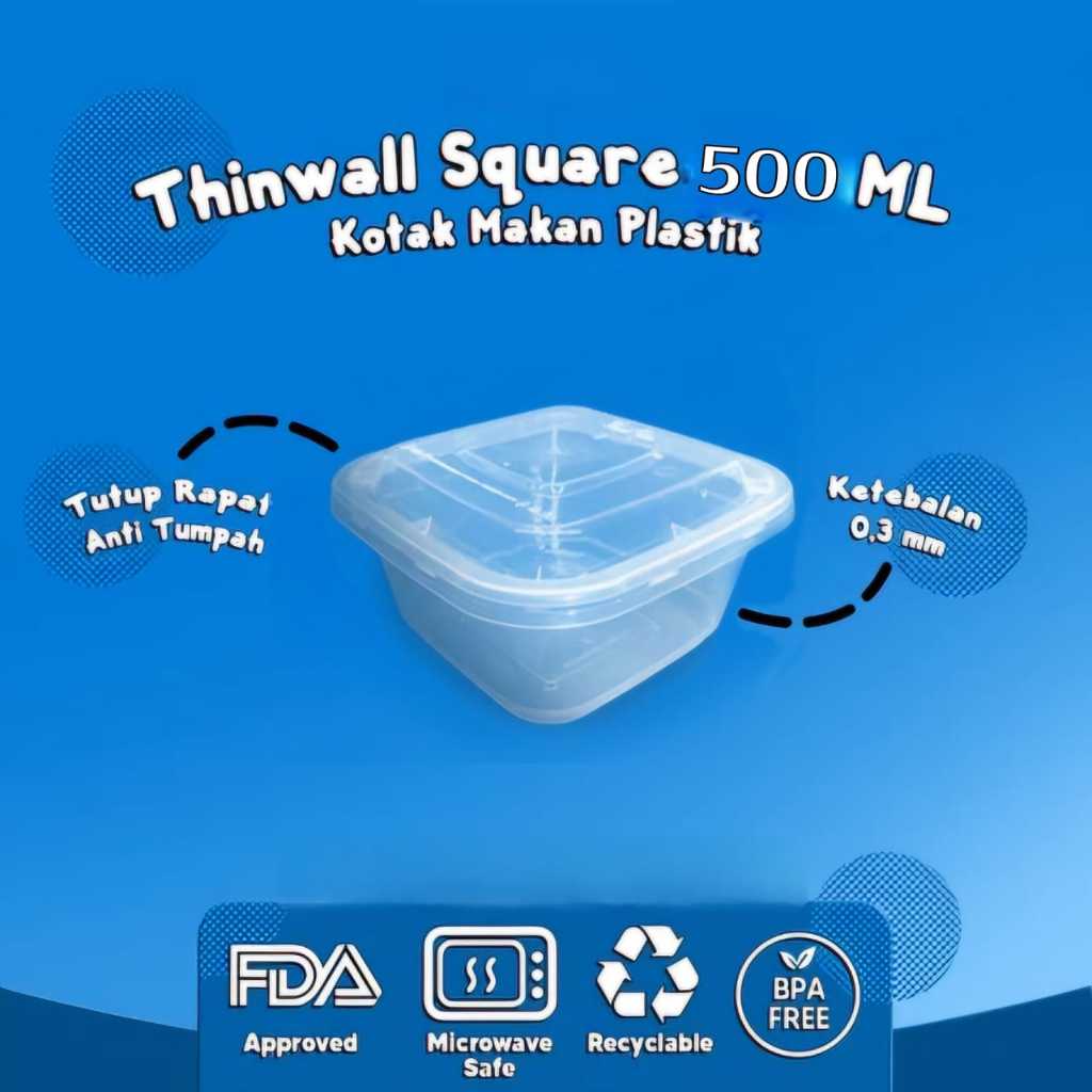 (Eceran) Thinwall Klir Kotak Thinwall Klir Square 120ml 150ml 350ml 500ml 600ml 760ml 1000ml Tempat Makan Bento Plastik Kokoh