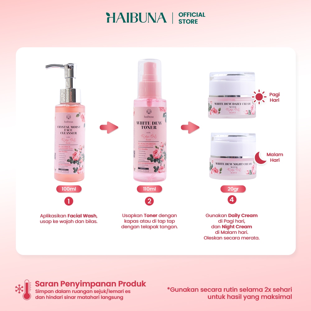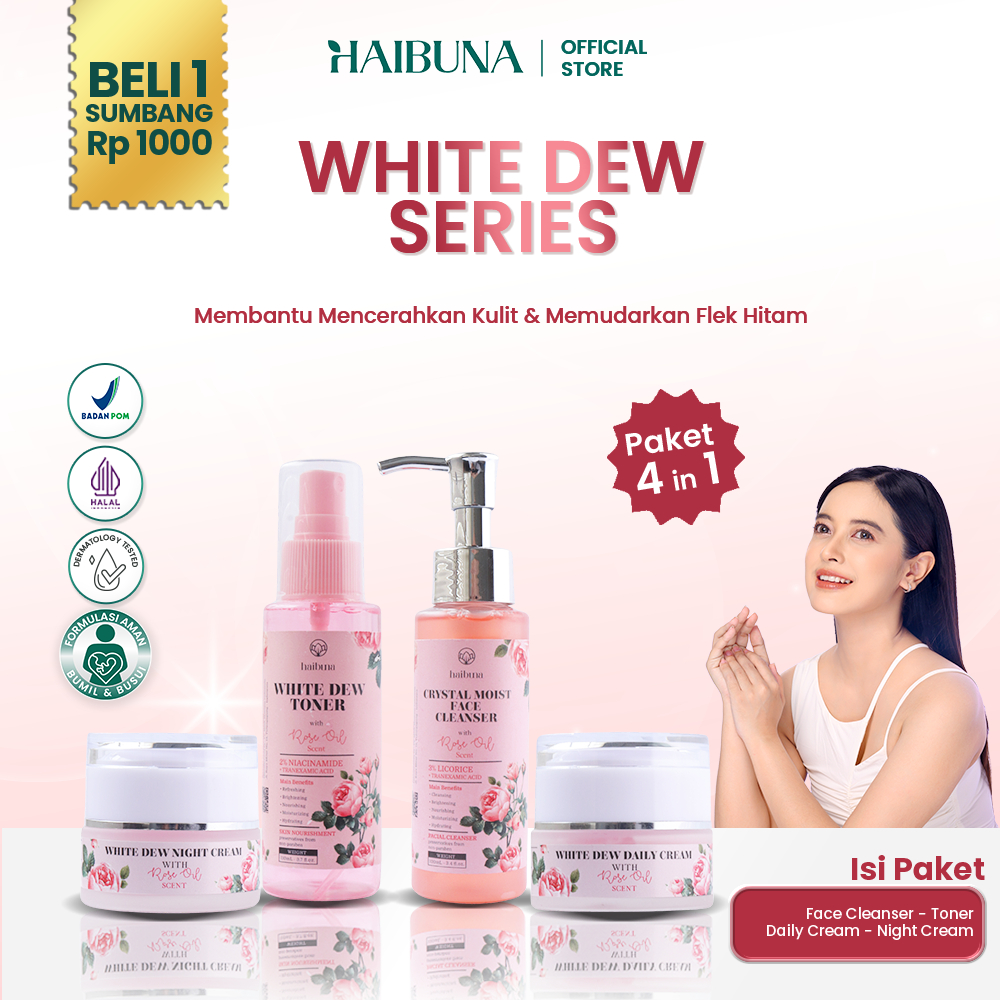 HAIBUNA WHITE DEW RADIANCE SET - NO SERUM (4PCS) | Aman Bumil Busui - Skincare Mencerahkan Flek Hitam & Kusam - Niacinamide Tranexamic Acid