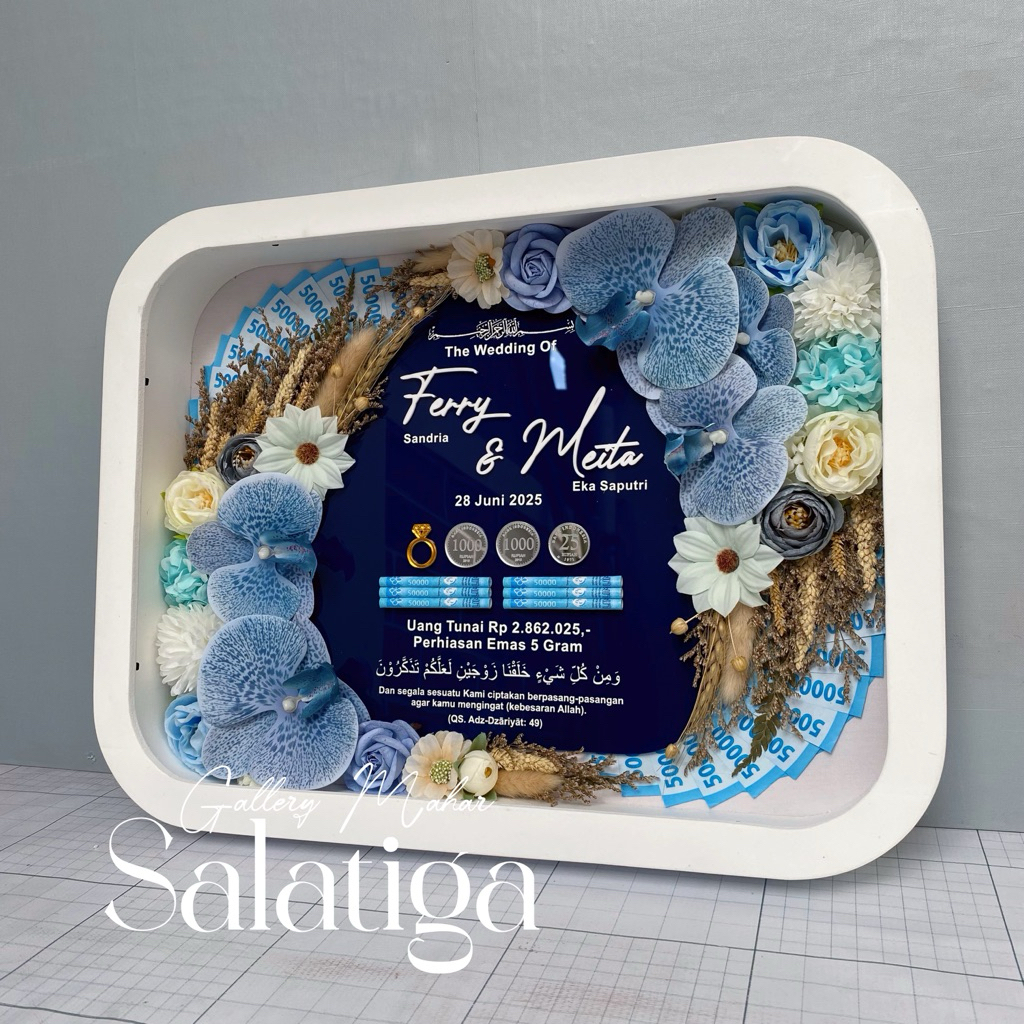 (FRAME LENGKUNG LANDSCAPE 40x30 CM) MAHAR PERNIKAHAN ANGGREK AKRILIK