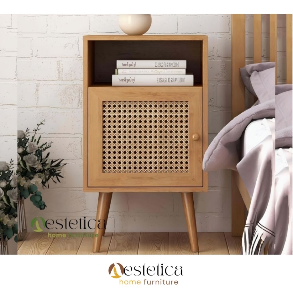 (FREE ONGKIR JAWA) MEJA SISI ESTETIK KAYU / MEJA NAKAS KAYU ROTAN / MEJA SAMPING / MARIA SIDE TABLE By Aestetica Furniture Surabaya