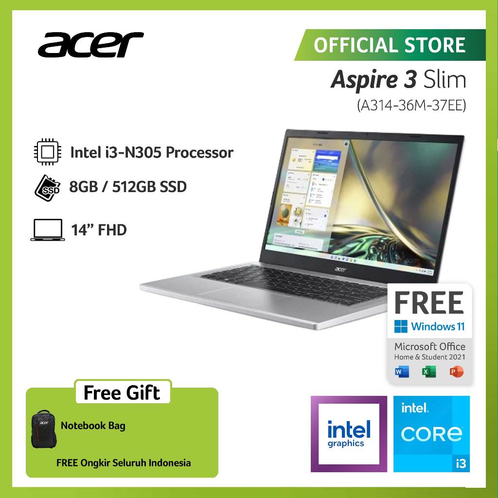 (FREE WIRELESS MOUSE) ACER LAPTOP ASPIRE 3 SLIM A314-36M-37EE 14" FHD INTEL CORE I3-N305 RAM 8GB STORAGE 512G SSD GRAPHICS INTEL UHD WINDOWS 11